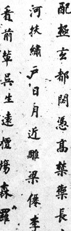 | 释义 | 杜甫诗轴 【简介】: 明·董其昌书。纸本。楷书,书杜甫《谒玄元皇帝庙》五言排律一首。凡六行,共一百八十字。刊于日本《明淸书道图说》。