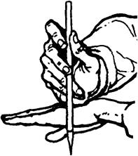 枕腕,以左手枕右手腕而书写。写小楷、寸楷可用,不合书写大字。
