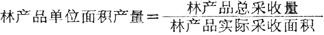 指林产品总采收量除以林产品实际采收面积之商。计算公式为: