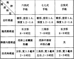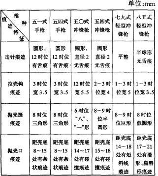 附表2:六四式手枪弹与配用枪支种类及弹壳痕迹特征区别
