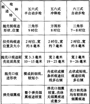 附表3:五六式步枪弹与配用枪支种类及弹壳痕迹特征的区别