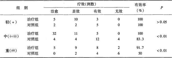 病情程度与疗效关系,见表9-2-20。 9-2-20 病情程度与疗效关系