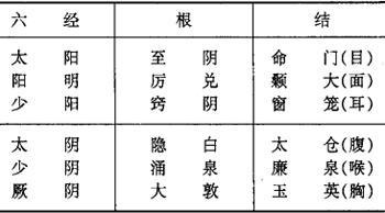 手三阴三阳的根结《灵枢·根结》中没有记述,据理也应以四肢末端的“井”穴为根,头、胸、腹三部的一定部位为结。