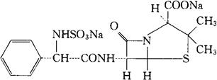 C16H17N3Na2O7S2=473.43 CAS-23444-86-2 6-[2-苯基-D-2-(氨磺酸基)乙酰胺基]青霉烷酸二钠盐。 6-[2-Phenyl-D-2-(sulfoamino)acetamido]penicillanic acid disodium salt. 3,3-二甲基-7-氧代-6-[2-苯基-D-2-(氨磺酸基)乙酰胺基]-4-硫杂-1-氮杂双环[3.2.0]庚烷-2-羧酸二钠盐。 3,3-Dimethyl-7-oxo-6-[2-phenyl-D-2-(sulfoamino)acetamido]-4-thia-1-azabicyclo[3.2.0]heptane-2-carboxylic acid disodium salt. 抗生素类药。 氨苄西林磺酸钠。 Suncillin Sodium. INN,USAN.  |