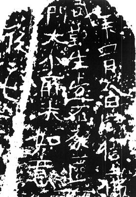 《武难生造像记》颇具野趣。笔法瘦硬粗率,结字疏密大小不一,爲不经书写,单刀入石随意镌刻所致。虽无明显的法度可循,但质朴无华;碑搨的圆锥形块面与上小下大的字构和谐,富有视觉上的仰视感。 其中个别笔划形态与书写之意暗合,可见以刀代笔之妙。如“笔”、“佛”、“造”、“石”、“如”、“意”等字。此刻在野趣中,也不乏灵动之气,如“造”字宽疏,笔划随意宛转;“石”字长撇遒劲恣肆,下“口”则有行书之意,巧妙灵活:“如”字偏旁,古朴大方,奇逸奔放;“意”字下“心”圆活浑劲。整体章法布局,亦无定格,随意安排,极其潇洒。 |