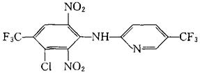 杂环类杀菌剂。 化学名称:3-氯-N(3-氯-2,6-二硝基-4-a,a,a-三氟甲苯基)-5-三氟甲基-2-吡啶胺。化学结构式如下。 原药黄色结晶,熔点115~117℃。 保护性杀菌剂,对交链孢霉、葡萄孢霉(特别是已对苯并咪唑,二羧酰亚胺类产生抗性的)、疫霉菌、单轴霉菌、核盘菌、黑星菌有效。不内吸,不具治疗作用,但极耐雨水冲刷、残效长,是一种很好的叶面喷洒剂,并能兼治叶螨。土壤处理还能有效的防治十字花科根肿病及由黑根霉引起的水稻猝倒病,在果树、蔬菜上使用时植物安全,但温室黄瓜慎用。 对大鼠急性口服毒性LD50>5000mg/kg,致突变试验,重组缺陷性测定,Aines试验呈阴性反应,鱼毒性鲤鱼TLM(48h)0.13mg/kg。