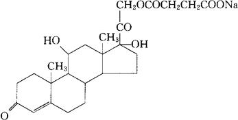 C25H31NaO8=484.52 CAS-125-04-2 21-(3-羧-1-氧代丙氧)-11β,17-二羟-孕甾-4-烯-3,20-二酮单钠盐。 21-(3-Carboxy-1-oxopropoxy)-11β,17-dihydroxypregn-4-ene-3,20-dione.monosodium salt.可的松21-(琥珀酸钠)。 Cortisol 21-(sodium succinate). 肾上皮质激素类药。 氢可琥钠,琥珀酸钠皮质醇。 Hydrocortisone Sodium Succinate, Hydrocortisone 21-Sodium Succinate. 注射用氢化可的松琥珀酸钠。 BP,USAN,USP,MI.  |