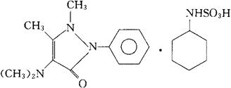 | 释义 | 氨基比林环拉酸盐 C13H17N3O·C6H13NO3S=410.53 CAS-747-30-8 4-二甲氨基-2,3-二甲基-1-苯基-3-吡唑啉-5-酮环己基氨基磺酸盐。 4-Dimethylamino-2,3-dimethyl-1-phenyl-3-pyrazolin5-one cyclohexylsulfamate. 解热镇痛药。 Aminophenazone Cyclamate. INN,USAN.
