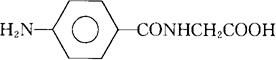 C9H10N2O3=194.19 CAS-61-78-9 N-(4-氨基苯甲酰基)甘氨酸。 N-(4-Aminobenzoyl)lycine. N-(对-氨基苯甲酰基)氨基乙酸。 N-(p-Aminobenzoyl)aminoacetic acid. 诊断用药。 对氨马尿酸。 Aminohippuric Acid,p-Aminohippuric Acid,PAH, Nephrotest. 对氨基马尿酸注射液。 Component of Aminohippurate Sodiun(Injection). USAN,USP,MI.  |