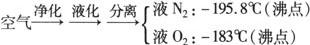 发生装置:固+液 (2)将干燥的空气通过加热的铜网也可制得N2. (3)工业制法:主要采用分离液态空气的方法来制得N2.
