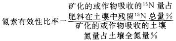 | 释义 | 氮素有效性比率 肥料残留氮的利用率(或矿化率)与土壤中原有氮的利用率(或矿化率)之比值。 是肥料残留氮有效性的相对度量。用15N肥料示踪法,根据作物吸收15N和14N量;或根据培育试验中矿化出的15N和14N量求得: