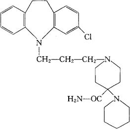 | 释义 | 氯卡帕明 C28H37ClN4O=481.08 CAS-47739-98-0 CAS-28085-62-0(hydrochloride) 1′-[3-(3-氯-10,11-二氢-5H-二苯并[b,f]氮杂 1′-[3-(3-Chloro-10,11-dihydro-5H-dibenz[b,f]azepin-5-yl)propyl][1,4′-bipiperidine]-4′-carboxamide. 抗抑郁药。 氯卡比咪嗪。 Clocapramine,Y 4153(as Hydrochloride). INN,USAN,MI.
