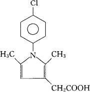| 释义 | 氯吡酸 C14H14ClNO2=263.72 CAS-42779-82-8 1-(4-氯苯基)-2,5-二甲基-1H-吡咯-3-乙酸。 1-(4-Chlorophenyl)-2,5-dimethyl-1H-pyrrole-3-acetic acid. 1-(对-氯苯基)-2,5-二甲吡咯-3-醋酸。 1-(p-Chlorophenyl)-2,5-dimethylpyrrole-3-acetic acid. 消炎镇痛药。 氯苯吡乙酸,氯匹酸,氯哌酸。 Clopirac,BRL 13856,CP 172 AP,Clopiran,Nidran. INN,BAN,USAN.