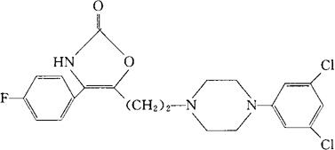 | 释义 | 氯地哌隆 C21H20Cl2FN3O2=436.31 CAS-72444-63-4 5-[2-[4-(3,5-二氯苯基)-1-哌嗪基]乙基]-4-(对-氟苯基)-4-噁唑啉-2-酮。 5-[2-[4-(3,5-Dichlorophenyl)-1-piperazinyl]ethyl]-4-(p-fluorophenyl)-4-oxazolin-2-one. 抗精神病药。 Lodiperone. INN,USAN.