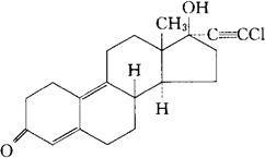 | 释义 | 氯炔诺酮 C20H23ClO2=330.85 CAS-3124-93-4 (17α)-21-氯-17-羟-19-去甲孕甾-4,9-二烯-20-炔-3-酮。 (17α)-21-Chloro-17-hydroxy-19-norpregna-4,9-dien-20-yn-3-one. 21-氯-17-羟-19-去甲-17α-孕甾-4,9-二烯-20-炔-3-酮。 21-Chloro-17-hydroxy-19-nor-17α-pregna-4,9-dien20-yn-3-one. 17α-(2-氯乙炔基)-17β-羟基雌甾-4,9-二烯-3-酮。 17α-(2-Chloro ethynyl)-17β-hydroxyestra-4,9 dien3-one. 孕激素类药。 Ethynerone,MK 665,Proqestin. INN,USAN.