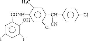 | 释义 | 氯生太尔 C22H14Cl2I2N2O2=663.08 CAS-57808-65-8 N-[5-氯-4-[(4-氯苯基)氰甲基]-2-甲基苯基]-2-羟-3,5-二碘苯甲酰胺。 N-[5-Chloro-4-[(4-chlorophenyl)-cyamomethyl]-2 methylphenyl]-2-hydroxy-3,5-diiodebengzamide. 5′-氯-α4-(对-氯苯基)-α4-氰基-3,5-二碘-2′,4′-水杨酰二甲苯胺。 5′-Chloro-α4-(p-chlorophenyl)-α4-cyano-3,5-diiodo2′,4′-salicyloxylidide. 抗蠕虫药。 克罗散泰。 Clorantel,R31.520,Seponver. UBAN.
