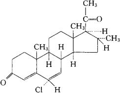 | 释义 | 氯甲孕酮 C22H31ClO2=362.94 CAS-5591-27-5 6α-氯-16α-甲基孕甾-4-烯-3,20-二酮。 6α-Chloro-16α-methylpregn-4-ene-3,20-dione. 雌激素拮抗药。 氯甲睾酮,克罗麦得龙。 Clometherone,Clometerone,Lilly-38000. INN(Clometerone),USAN.