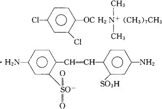 | 释义 | 氯芬铵安索酸盐 C31H41Cl2N3O5S2=670.71 CAS-7168-18-5 [(2,4-二氯苯氧基)甲基]二甲基-n-辛铵安索酸盐。 [(2,4-Dichlorophenoxy)methyl]-dimethyl-n-octylammonium amsonate. 消毒防腐药。具有抗菌和抗霉菌作用的阳离表面活性剂,其含片用于口腔和喉部炎症的治疗。 氯苯氧铵菧磺酸盐。 Chlorphenoctium Amsonate,Chlorphenocftonum. INN,BAN,USAN.