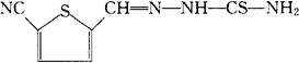 | 释义 | 氰噻腙 C7H6N4S2=210.27 CAS-21512-15-2 5-甲酰-2-噻吩晴缩氨基硫脲。 5-Formyl-2-thiophenecarbonitrile thiosemicarbaz0ne. 抗病毒药。 西替那宗。 Citenazone,Hoe105. INN,USAN,