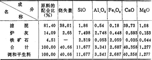 9.调整后生料中各项原料的配合比及生料的化学成分 表7-84 各项原料的配合比及生料的化学成分