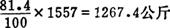 各种干燥原料的使用量以 原料需用量如下。 每吨熟料,即100公斤熟料需用干燥后的原料数量。 (1)滤泥的数量为: