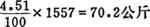(2)炉灰的数量为: