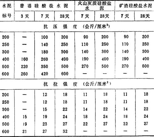 (1)细度 4900孔/厘米2标准筛筛余不得超过15%。 (2)凝结时间 初凝不得早于45分钟,终凝不得迟于12小时。如因需要,凝结时间的规定可以变动。 (3)体积安定性 用汽蒸及沸煮法试验,试体体积变化必须均匀。 (4)强度 按标准规定的强度检验方法试验,各龄期强度均不得低于表7-75数值。 表7-75 各种水泥各龄期强度数值  (5)烧失量 普通硅酸盐水泥不得超过5%,火山灰质硅酸盐水泥和矿渣硅酸盐水泥不作规定。立窑烧制的普通硅酸盐水泥的烧失量允许达到7%。 (6)氧化镁 制造水泥所用熟料中氧化镁的含量不得超过4.5%。 (7)三氧化硫 水泥中三氧化硫的含量不得超过3.0%。 |