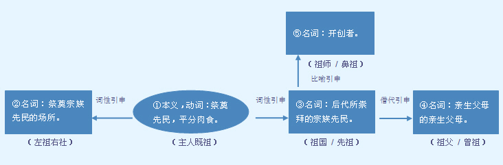 父母亲的上一辈;祖宗;事业或宗派的首创者。常用于固定词组中,或用作语素构成合成词。 返~现象|光宗耀~|数典忘~|开山~师|~辈|~宗|~先|鼻~|外~母。 【词语】 祖辈 祖本 祖产 祖传 祖坟 祖父 祖国 祖籍 祖母 祖上 祖师 祖孙 祖先 祖业 祖述 祖宗