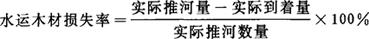 式中:实际推河量指运输木材过程中,一开始将河道、楞场的木材用机械或人工推入河中的数量。实际到著量指木材流送到达目的地时的数量。 |