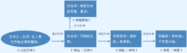 | 释义 | ![]() ❶迷信的人指天地万物的创造者和统治者。 a.作宾语。 谁看见过~?|有的人相信~,有的人不相信~。 b.作主语。 ~在什么地方?|~在那虚无缥缈的天空中吗? ❷精神;精力。 a.作宾语。 年轻的保卫干事两眼炯炯有~|让你费了不少~吧。 b.作主语。 ~形兼备|散文的特点是形散~不散。 特别高超出众、令人惊异的;神妙的。能受程度副词修饰。一般用于口语。作谓语。 侦察员的枪法多~哪!|这样发球,太~了! 【近】 〈名〉❶仙 【反】 〈名〉❶人 鬼 【词语】 神出鬼没 神乎其神 神化 神机妙算 神经 神灵 神妙 神农架 神思 神算 神通 神仙 神医 神游 神韵 神志 神州 字源解说 “申”、“电”、“神”本是同一个字,后分化。申,甲骨文 附 文言版《説文解字》:神,天神,引出萬物者也。从示申。 附 白话版《说文解字》:神,天神,引出万物的存在。字形采用“示、申”会义。 引申线索 ![]() 【字族索引】 申 【同音字】 shén |