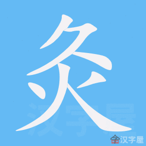 久,既是声旁也是形旁,表示时间长。灸,金文=(久,时间长)+(火,燃艾),造字本义:用燃艾慢慢地薰烤人体穴道,以达到舒筋活血、调气通脉的疗养目的。篆文承续金文字形。