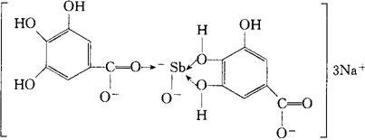 | 释义 | 没食子酸锑钠[典] C14H10Na3O12Sb=560.94 偏二没食子酸合亚锑酸三钠。 Antimony sodium subgallate. 抗血吸虫病药。用于慢性血吸虫病。 二没食子酸锑钠,次没锑钠,锑-273,次没食子酸锑钠。 Antimony Sodium Subgallate,Sodium Antimonyl Gallate,Sb-273. 没食子酸锑钠片(锑-273-片)。
