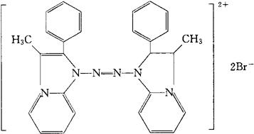 | 释义 | 法扎溴铵 C28H24Br2N6=604.35 CAS-49564-56-9 1,1′-偶氮双[3-甲基-2-苯基-1H-咪唑并[1,2-a]吡啶-4-鎓]二溴化物。 1,1′-Azobis[3-methyl-2-phenyl-1H-imidazo[1,2-a]pyridin-4-ium]dibromide. 神经肌肉阻断药,肌肉松弛药。 Fazadinium Bromide,AH 8165D,Fazadinium Dibromide,Fazdom,Fazadan. INN,BAN,USAN.