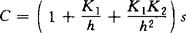 其中h≡[H+]是表征酸度的氢离子浓度;s≡[CO2]是水相CO2浓度;K1,K2等是化学平衡系数,再借助于碱度方程可以推出