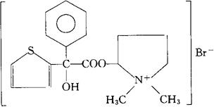 C18H22BrNO3S=412.34 CAS-7247-57-6 3-[(羟苯基-2-噻吩基乙酰基)氧]-1,1-二甲基-,吡咯烷鎓,溴化物。 Pyrrolidinium,3-[(hydroxyphenyl-2-thienylacetyl)oxy]-1,1-dimethyl-,bromide. (±)-3-羟-1,1-二甲基溴化吡咯烷鎓α-苯基-2-噻吩甘醇酸盐。 (±)-3-Hydroxy-1,1-dimethylpyrrolidinium bromide α-phenyl-2-thiopheneglycolate. α+β-(±)-(1-甲基-3-吡咯烷基)-α-苯基-α-(2-噻吩基)甘醇酸酯甲溴化物。 α+β-(±)-(1-Methyl-3-pyrrolidinyl)-α-phenyl-α-(2-thienyl)glycolate methobromide. 抗胆碱药。 Heteronium Bromide,Lilly 31814. INN,BAN,USAN.  |