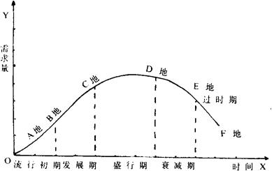 | 释义 | 消费流行品种地域差 同一种流行消费品在同一时间内,不同地区处在消费流行过程不同阶段上的表现。 一种消费品(或劳务)的消费流行总是首先在先进地区内产生、发展起来,然后逐步向后进地区扩散。这样,在同一时期内就必然存在著不同地区在流行期不同阶段上的差异(见图)。