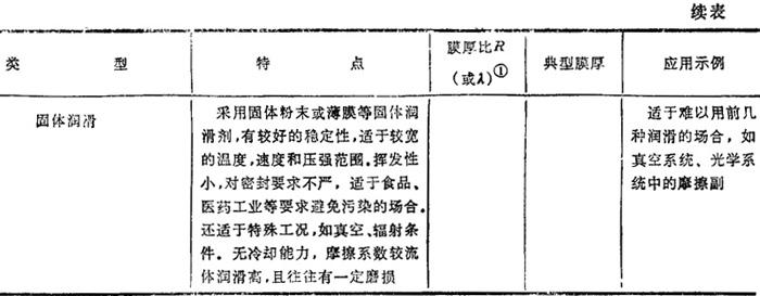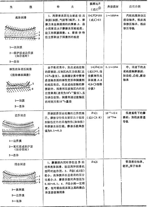 注:❶ R=hmin/(Ra1+Ra2〕,λ=hmin/(σ12+σ22〕1/2。hmin为最小油(气)膜厚度或保护层厚度,Ra1,Rn2为两表面的表面轮廓算术平均偏差,σ1,σ2为两表面粗糙度的均方根值(定义见表1.5-1)。
