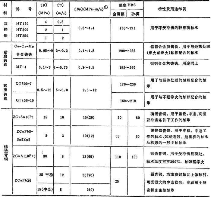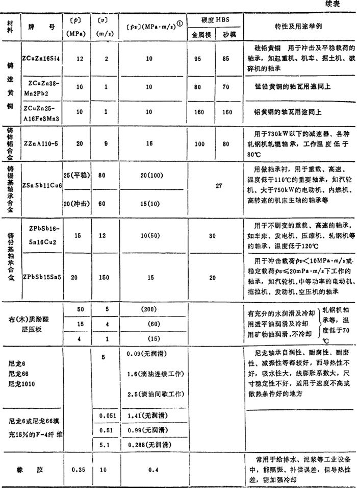 注: 表4.9-23 粉末冶金(含油)轴承材料牌号及其物理机械性能(摘自GB2688—81)