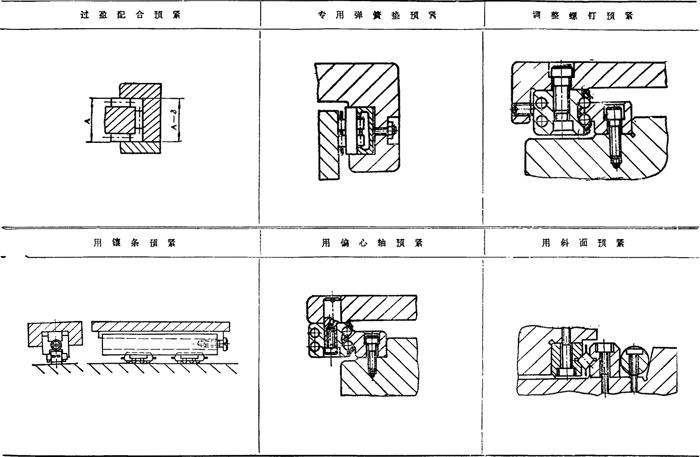 注:用过盈配合或镶条预紧可以得到高的精度和刚度,且载荷分布均匀。