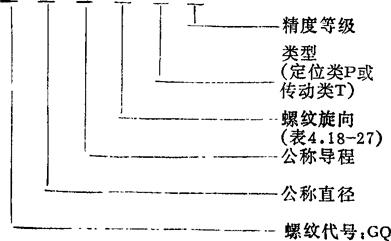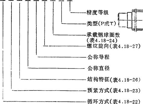 滚珠丝杠副的有关代号分别见表4.18-21~4.18-27。其标注示例如下: