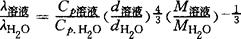 其误差仅为-0.9%。 对大多数电解质溶液,热电导率随温度增加而增加,大约在130~140℃达到极限值。Vargaftik和Os’minin又提出了溶液的相对热电导率,即溶液的热电导率与纯水的热电导率的比值(λ溶液/λH2O)其表达式为: