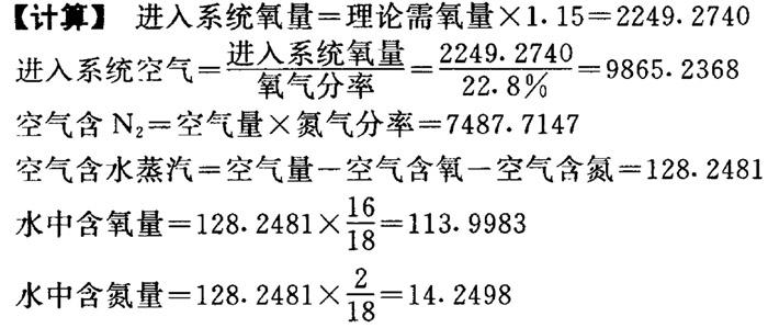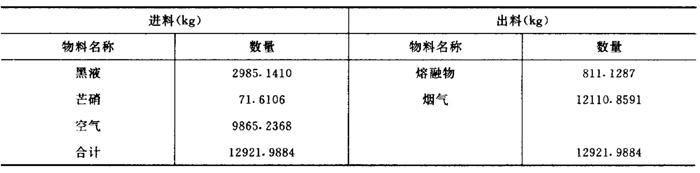 ❷ 烟气组成计算 【计算】 烟气中的水=化合水+黑液中水+空气中水 =677.0304+1194.0564+128.2481 =1999.3349 烟气水中氧=1277.1866 烟气水中氢=222.1483 烟气中的SO2=13.0064 烟气SO2中硫含量=6.5032 烟气SO2中氧含量=6.5032 烟气中的CO2=2304.8201 烟气CO2中氧=1676.2328 烟气CO2中碳=628.5873 烟气中的Na2O=12.6000 烟气Na2O中氧=3.2516 烟气Na2O中钠=9.3484 烟气中的N2=7487.7147 烟气中的O2=293.3836 烟气总量=烟气中水+SO2+CO2+Na2O+N2+O2=12110.8597 7.燃烧炉中总物料平衡 【说明】 燃烧炉总物料平衡情况列于表1-18-4。 表1-18-4 燃烧炉总物料平衡
