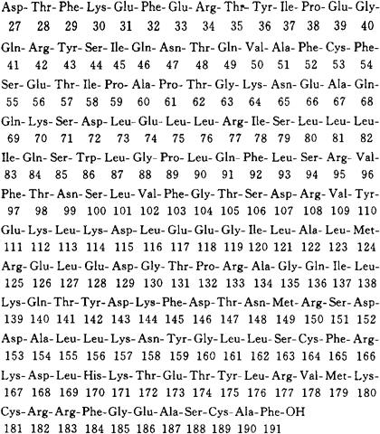 C987H1550N268O291S9=22,115.33 CAS-96353-48-9 1-[N2-L-蛋氨酰-L-α-天冬氨酰]-L-谷氨酰胺生长激素(牛还原的)。 。 1-[N2-L-Methionyl-L-α-aspartyl]-L-glutamine somatotropin(ox reduced). 1-[N2-(N-L-蛋氨酰-L-α-天冬氨酰)-L-谷氨酰胺生长激素(牛还原的)。 1-[N2-(N-L-Methionyl-L-α-aspartyl)-L-glutamine]growth hormone(ox reduced). 催乳剂(兽用),垂体激素类药。 Somagrebove,CL291.894. USAN.