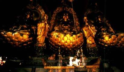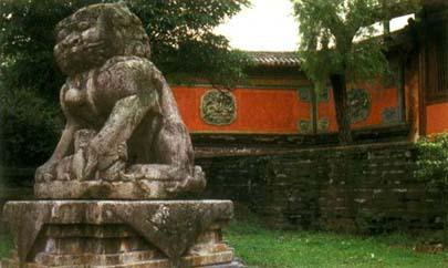 全国重点文物保护单位。位于玉泉山麓。我国最早的佛教寺院之一,有“荆楚丛林之冠”的美誉。 玉泉寺初名普净庵,因东汉建安年间(196—219)普净禅师曾修行于此。南朝梁宣帝敕建覆船山寺。隋开皇(589—600)初,智 唐贞观年间(627—649),僧法填增建。高僧神秀(约606—706)曾在此传法,创禅宗北宗,倡渐悟禅学。宋天禧(1017—1021)末,明肃皇后大规模扩建,“占地左五里,右五里,前后十里。为楼者九,为殿者十八,僧舍三千七百”。元、明、清均有修葺。 寺内古建筑共415间,其中主体建筑56间,按照古代营建造法的中轴线布局,寺前有山门,为三开门牌坊,上书“三楚名山”;通过三门和石桥,步入殿内,依次为天王殿、大雄宝殿、毗卢殿,左有般舟堂、东禅堂,西有藏经楼、西禅堂。 主体建筑是大雄宝殿,面积1253平方米,通高22米,七开间,重檐歇山顶。整个屋架为木结构。没有一个铁钉,构造严谨,形体庄严。殿内48根柱,柱围2米;殿外24根柱,高20米,直径0.8米,为楠木制成。大殿斗拱,造型别致。戗脊之上,安以各种走兽,整个建筑表现了古代劳动人民的创造才能和智慧。 寺内花木峥嵘,古树参天,唐代的银杏、每月开花的月月桂、一蒂二蕊的并蒂“千瓣莲”等都是珍贵的观赏植物,确是“曲径通幽处,禅房花木深”。殿前的大镬,铸于隋大业十一年(公元615年),重1500公斤,还有元代铸造的大钟、铁釜,以及明清鼎炉和唐代画家吴道子所绘观音像等碑刻。