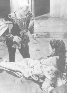 | 释义 | 王子复仇记 【片头介绍】: 1948 黑白片 142分钟 英国双城影片公司摄制 制片人兼导演:劳伦斯·奥立弗 编剧:劳伦斯·奥立弗 艾伦·登特(根据莎士比亚戏剧《哈姆雷特》改编) 摄影:德斯蒙德·迪金森 主要演员:劳伦斯·奥立弗(饰哈姆雷特) 琼·西蒙丝(饰莪菲莉娅) 艾琳·赫莉(饰葛楚德) 巴兹尔·西德尼(饰克劳狄斯) 本片获1948年美国影艺学院最佳影片、最佳男演员、最佳美工、最佳服装四项奥斯卡金像奖,威尼斯国际电影节金狮奖及最佳女演员,最佳摄影奖,好莱坞外国记者协会最佳影片、最佳男演员两项金球奖,纽约影评协会最佳男演员奖,英国电影学院最佳影片奖 【剧情简介】: 丹麦王国的城堡里,霍拉旭和另外两名守城的官兵发现了一个奇怪的幽灵。 他很像死去的先王,当北极星升起在夜空,他就神秘地出现;一旦公鸡啼晨,他又匆匆消逝。 先王突然去世尚不足月,王后葛楚德就改嫁国王的弟弟克劳狄斯;克劳狄斯因此篡夺了王位。这件事强烈刺激了年轻的王子哈姆雷特:他为父亲的去世极度悲伤;又为母亲的乱伦感到耻辱。对于新国王,哈姆雷特非常反感,觉得他一点也不像自己完美的父亲。 听了霍拉旭的报告,哈姆雷特决心去亲自等候幽灵。 深夜,幽灵重新出现了。 他向哈姆雷特招手,引导哈姆雷特来到城堡尽头,并告诉哈姆雷特,他就是先王的灵魂,正在炼狱受著酷刑。他并非像传闻所言,是在花园睡觉时被毒蛇咬死,而是遭到了弟弟克劳狄斯的暗害。 他要求儿子为自己复仇,但复仇时不要玷污了自己的品质,并且不能伤害自己的母亲,至于王后的罪恶,由上天惩罚就行了。哈姆雷特让亲历其境的几个人诅咒保密,立誓报仇。 为了复仇,哈姆雷特采取了装疯的策略,以便消弭叔叔克劳狄斯的疑心。从此,哈姆雷特在服装和言行上都变得狂妄怪诞起来。 王后不知内情,以为儿子是因为哀悼亡父及爱情的缘故才变成这样。然而,克劳狄斯并不放心,打算将王子放逐到英国。 哈姆雷特热恋著御前大臣波洛纽斯的女儿莪菲莉娅,他给莪菲莉娅写信,一再表示爱慕。但波洛纽斯和莪菲莉娅的哥哥莱阿替斯都反对这门“不现实的婚姻”,他们告诫莪菲莉娅:哈姆雷特的地位太高,小心上当受骗。可莪菲莉娅无法摆脱对于哈姆雷特的深情,她不断试探哈姆雷特。可哈姆雷特为了伪装得更像,不敢向心爱的姑娘表露真情,仅仅暗示自己真挚的爱。这使莪菲莉娅的精神十分痛苦。 宫中来了一班戏子,哈姆雷特借演出前的机会继续装疯,他在爱情折磨下说出的双关语进一步刺伤了莪菲莉娅。 波洛纽斯处心积虑地刺探哈姆雷特,可总猜不透王子的心。 戏班演出的是和谋杀先王相仿的剧情,哈姆雷特暗中观察叔叔的反应。 从国王失态的神色中,哈姆雷特证实了幽灵说出的真相,他将自.己的感受告诉了挚友霍拉旭。 良心的谴责搅得克劳狄斯坐立不安,他祈祷上天的宽恕。 此时哈姆雷特恰在其侧,当王子正要动手时,一个念头制止了他——此时复仇正遇罪人忏悔,等于将恶人的灵魂送上天堂。必须在恶人干著伤天害理的勾当时再砍倒他,这样克劳狄斯的灵魂只能坠入地狱。高贵的哈姆雷特终于放弃了这次复仇的良机。 在母后的寝室,哈姆雷特斥责王后葛楚德。 王后误以为哈姆雷特会将自己杀死,恐惧地叫嚷起来。同时,帷幕后也发出了“救命!救命!救命!”的呼叫。哈姆雷特认为是国王藏在里面,拔剑刺去,没想到扎死的是充当密探的波洛纽斯。借责备波洛纽斯的愚蠢,哈姆雷特又在灵魂上狠狠鞭挞了母亲的背叛,使得王后心如刀割。 这时,幽灵重新出现,他要求哈姆雷特帮助母亲解脱良心上的折磨。 国王发现了波洛纽斯的死,更加怀疑哈姆雷特。他要王子立即出发去英国,并在捎去的信中要求英王将哈姆雷特处死。没想到哈姆雷特出海后遇上海盗船的袭击。 交战中哈姆雷特作了海盗的俘虏。海盗们为求日后得到报答,优待了丹麦王子,并将哈姆雷特释放。哈姆雷特信告霍拉旭火速赶来,护送他回国。 回国后,哈姆雷特在墓地遇上一位掘墓人,正当他们进行一番充满哲理的对话时,来了一支送葬的队伍。队伍中有国王、王后和臣子们,可葬仪却很草率。哈姆雷特满腹狐疑,主教告诉他:被埋葬的是一个自寻短见的姑娘。按照教规,这种死法只能葬身荒野;只因上头有令,才得以安埋墓地。这姑娘就是哈姆雷特心爱的莪菲莉娅。 原来,莪菲莉娅得知父亲竟然死在恋人的手里,哀痛欲绝,很快就神经错乱。姑娘唱著歌,用鲜花野草编成花圈。 当她要将花圈挂在河边的柳树上时,树枝断了,姑娘落水身亡。 莱阿替斯因父亲和妹妹的惨死深恨哈姆雷特,他跳进妹妹的坟墓,悲痛欲绝。 哈姆雷特不能忍受有人比自己更加痛苦,也一块儿跳了进去,他说自己对莪菲莉娅的爱比四个哥哥还要深。哈姆雷特的表白并没取得莱阿替斯的谅解,国王又用心险恶地从中挑拨,莱阿替斯提出了要和哈姆雷特比武;哈姆雷特不明真相,接受了挑战。 在国王的安排下,莱阿替斯准备了一把尖头毒剑,哈姆雷特使用的却是无毒的圆头剑。莱阿替斯起先麻痹哈姆雷特,一旦得手,就用毒剑给他致命的一击。 哈姆雷特仍不知情,他无意中将自己的无毒剑换过了莱阿替斯的有毒剑,并回刺了对方。这样,莱阿替斯也自食其果。 这当儿,王后突叫中毒。原来国王给哈姆雷特备下的饮料中下了毒,王后毫无防备地喝下了。哈姆雷特顿起疑心,当