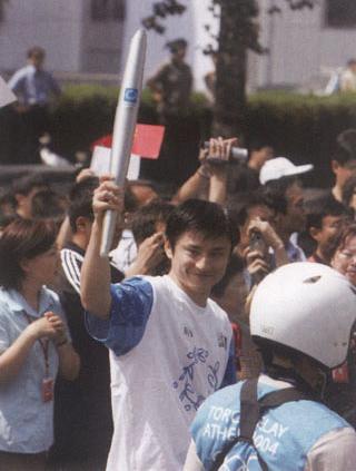 2004年6月9日,雅典奥运会北京火炬传递,王海滨接过火炬。 |