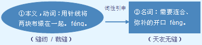 féng ❶动用针线连缀。缝衣服|伤口缝了三针 ○❷名姓。另见fèng。 缝fèng (縫)❶名缝(féng)合或接合的地方。裤缝|天衣无缝|无缝钢管 →❷名空隙;裂开的狭长口子。窗户缝|桌面上裂了一道缝儿|缝隙另见féng。