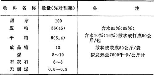 注: ❷ 成品糖数量以菜丝含糖16%,损失3%计 ❸ 工厂进厂甜菜总量=加工日数×日加工能力×1.05(1.05系含杂系数) |