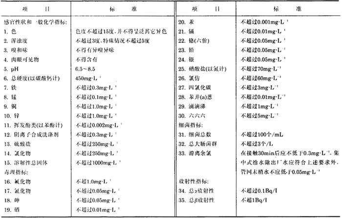 | 释义 | 生活用水 生活用水的水质应符合GB5749-85国家《生活饮用水卫生标准》,见表2-8。 表2-8 生活饮用水的水质标准