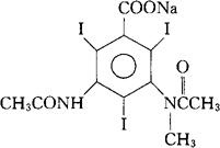| 释义 | 甲泛影钠 C12H10I3N2NaO4=649.93 CAS-7225-61-8 CAS-1949-45-7(metrizoic acid) 3-(乙酰氨基)-5-(乙酰甲氨基)-2,4,6-三碘-苯甲酸单钠盐。 3-(Acetylamino)-5-(acetylmethylamino)-2,4,6-triiodobenzoic acid,monosodium salt. 3-乙酰胺基-2,4,6-三碘-5-(N-甲基乙酰胺基)苯甲酸钠。 Sodium 3-acetamido-2,4,6-triiodo-5-(N-methylacetamido)benzoate. 诊断用药。 甲泛影钠。 Metrizoate Sodium,NSC-107431. INN(Sodium Metrizoate),USAN.